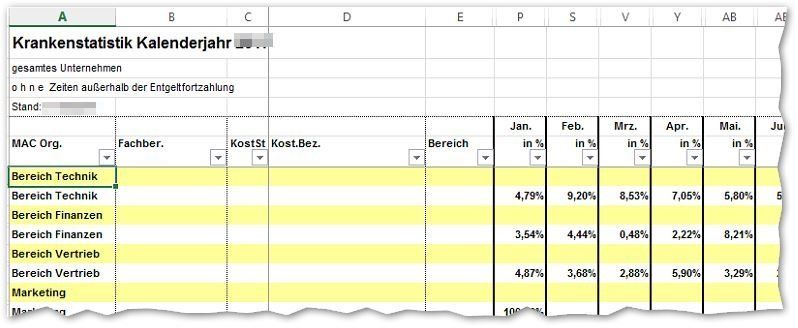 - Krankenstatistiken oder Auswertungen anderer Abwesenheiten