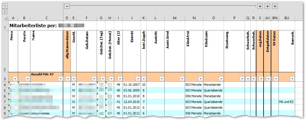 - Mitarbeiterlisten für Ad hoc Auswertungen via Excel- Filtertechnik